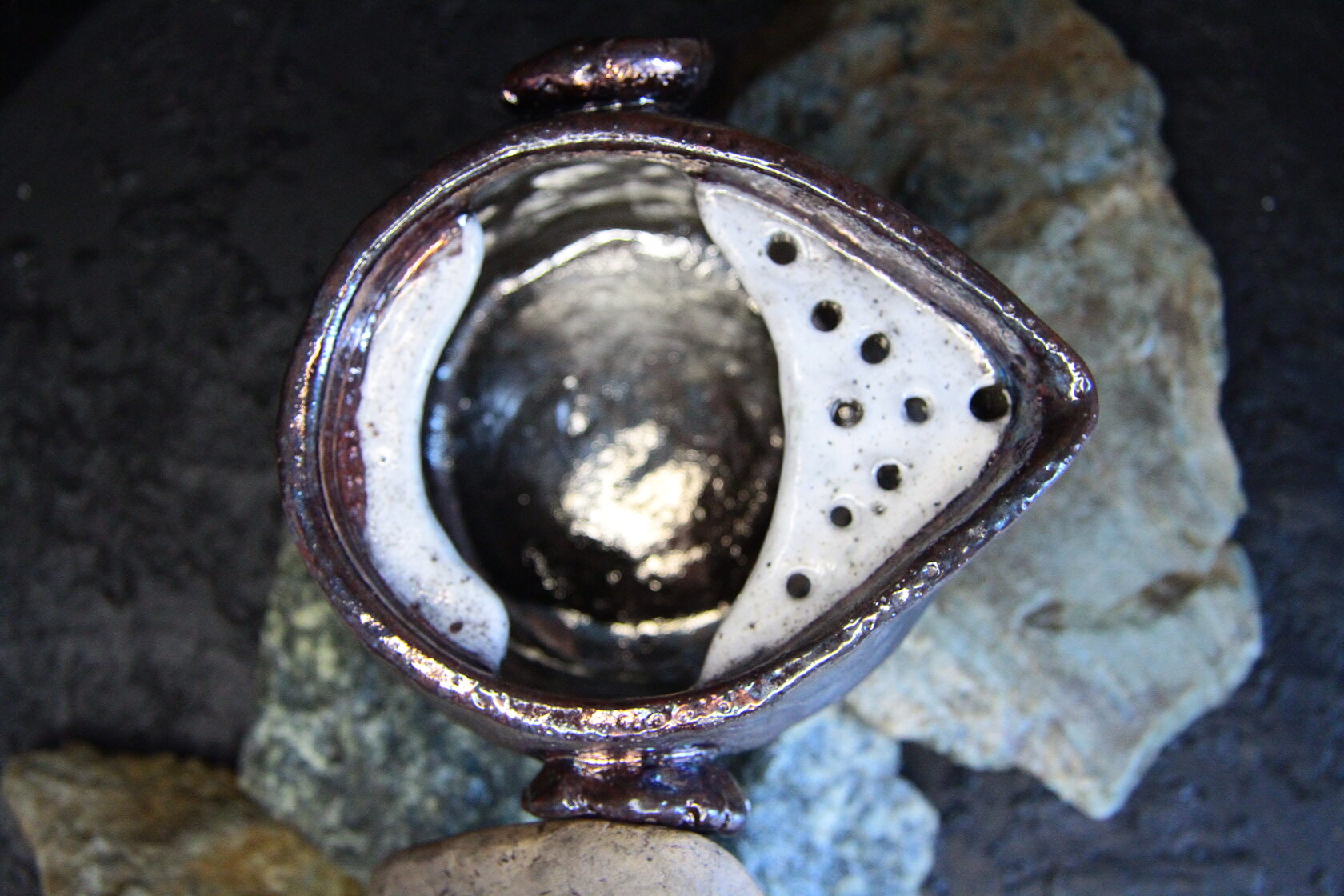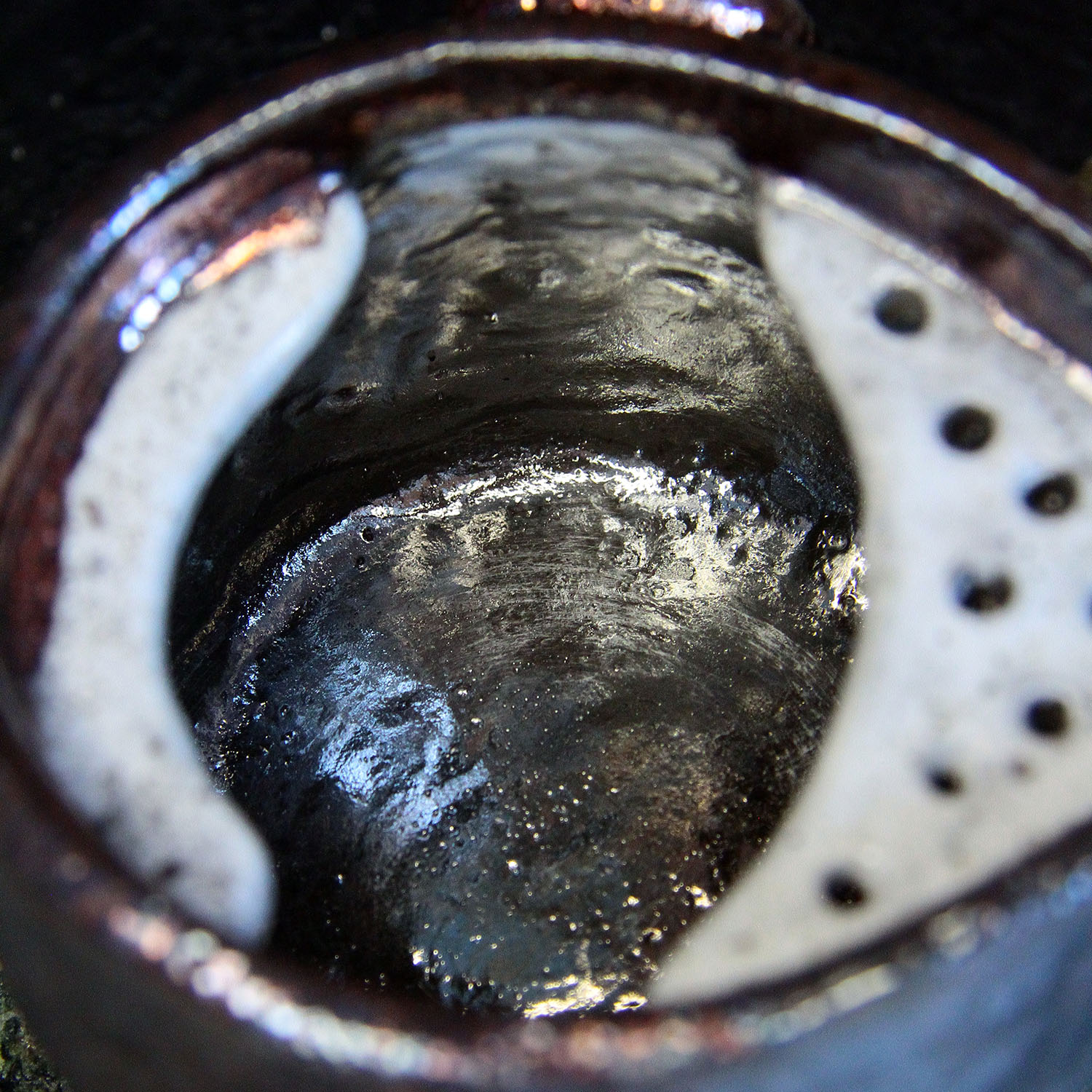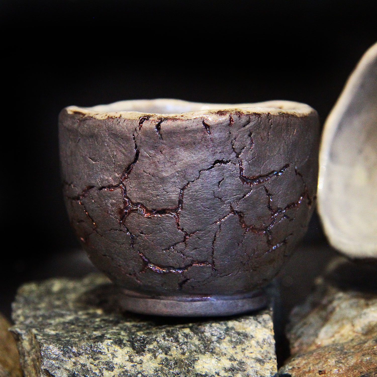 Техника раку – это старинный японский способ обжига керамики, весьма эффектный, но очень агрессивный для изделий: многие не выдерживают чудовищного перепада температур и взрываются в печи и при остывании. Зато те, кто выживает, становятся настоящими керамическими жемчужинами.